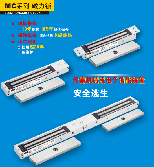4、無(wú)需機(jī)械或電子消磁裝置(斷電開鎖,安全逃生)