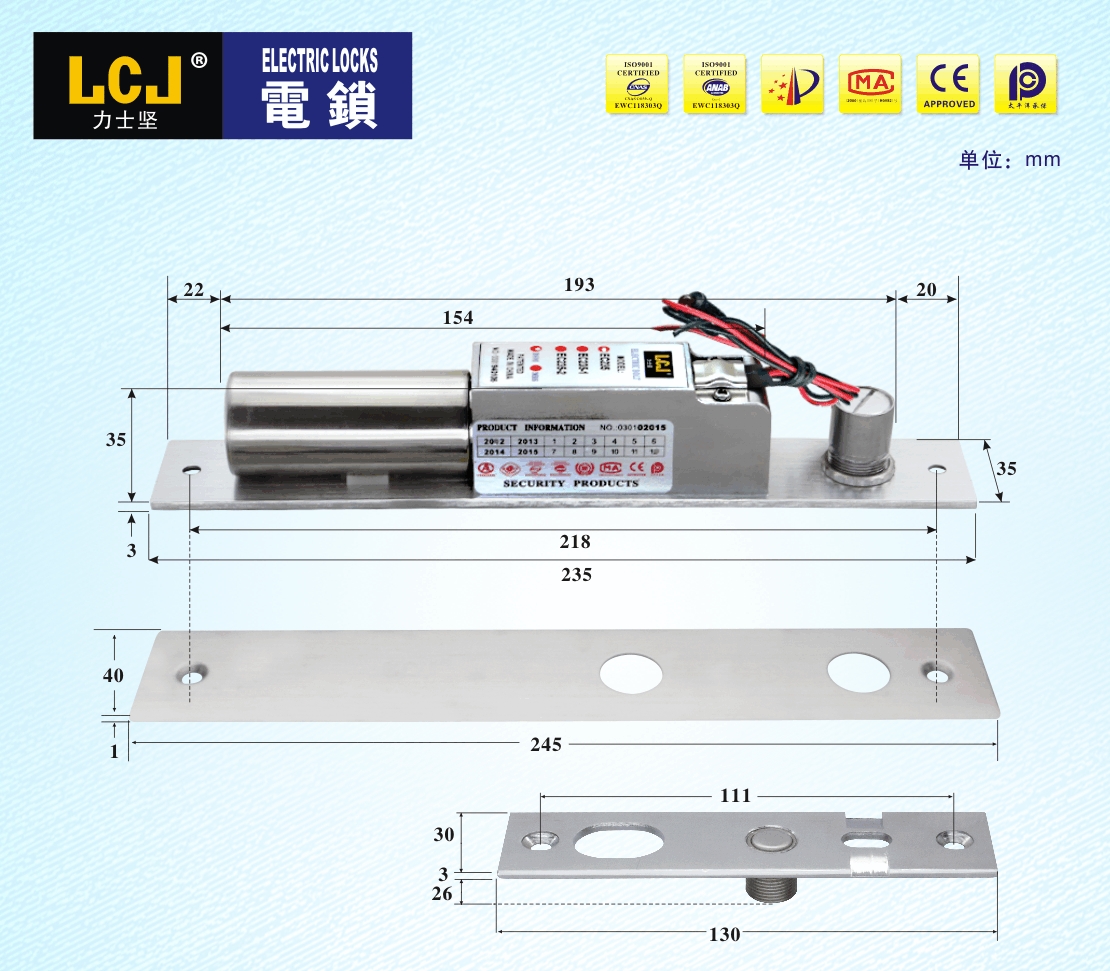 EC電插鎖是按照《電插鎖》標(biāo)準(zhǔn)自主設(shè)計(jì)開發(fā),擁有實(shí)用新型、外觀等專利。
